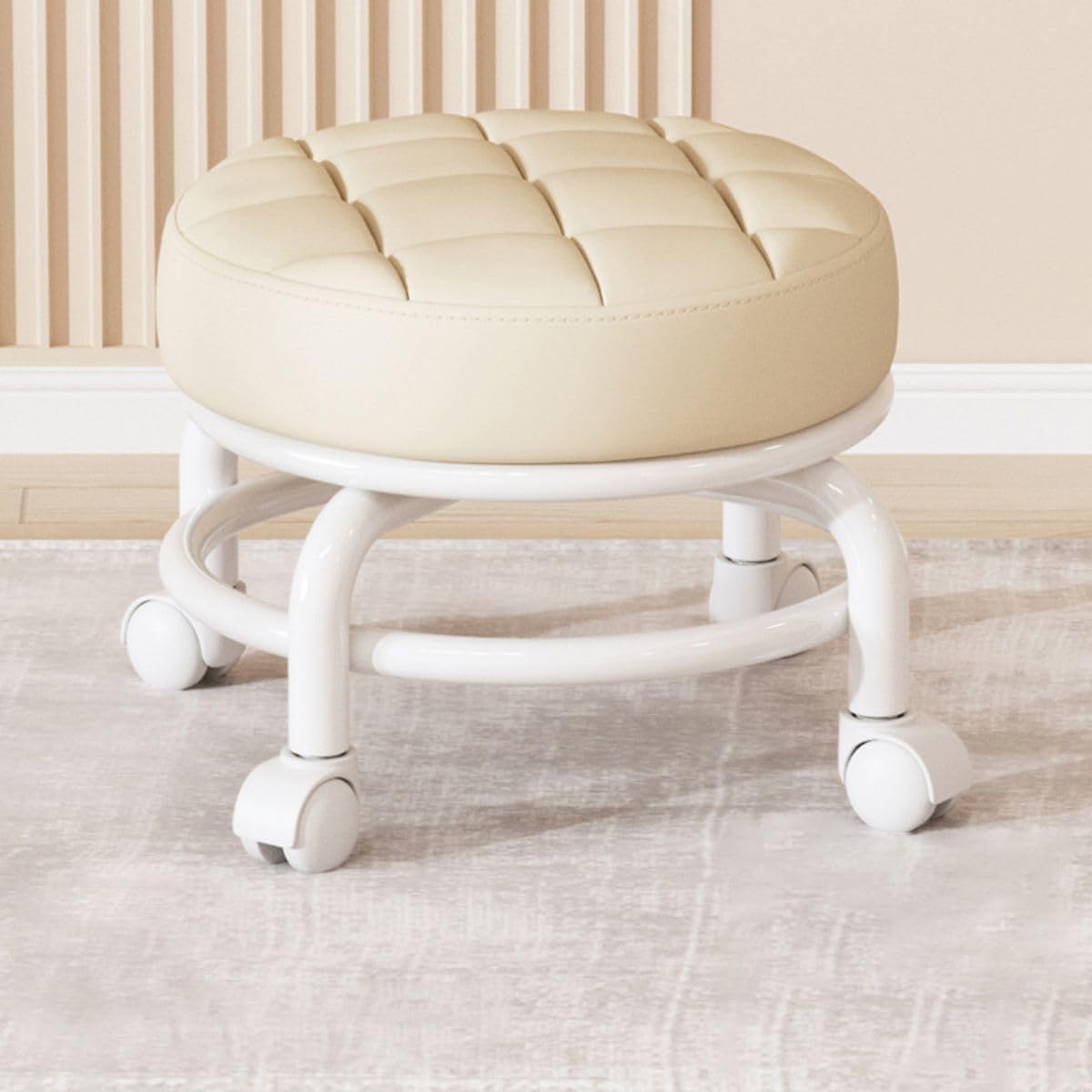 360° mini stolica tihim točkićima omogućava lako i nečujno pomeranje u svim pravcima. Čvrsta konstrukcija sa duplim cevima podnosi do 136 kg, dok mekano i prozračno sedište otporno na vodu i mrlje pruža dugotrajnu udobnost. Pogodna za pedikir, frizerske salone, kancelarije kao i za kućnu upotrebu.